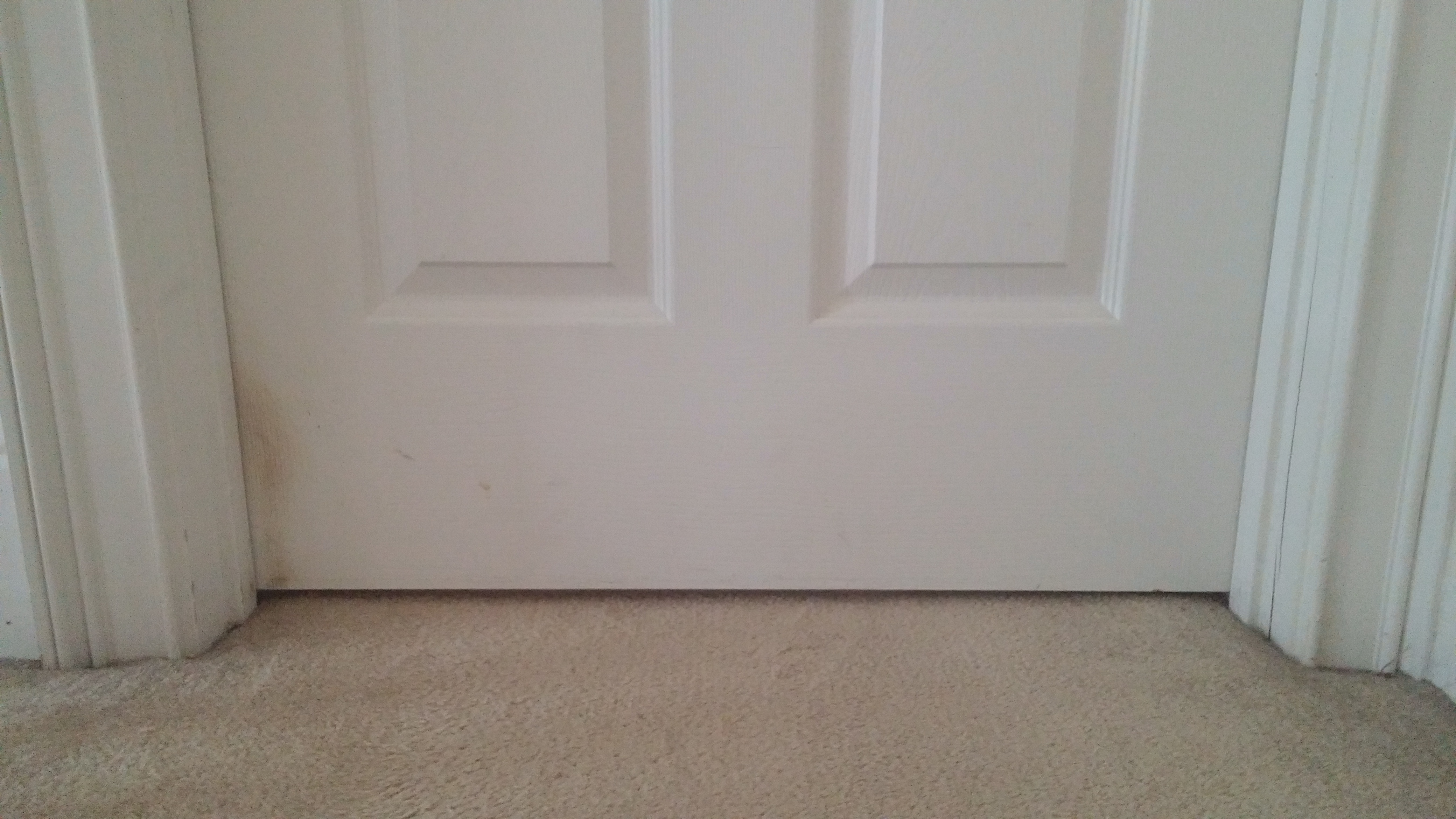 This is a picture of our bedroom door. The little mark on it, on the left side, is about 12 years of The Greatest Dog Who Ever Lived butting his way into the room. (You can click on the photo to enlarge.)