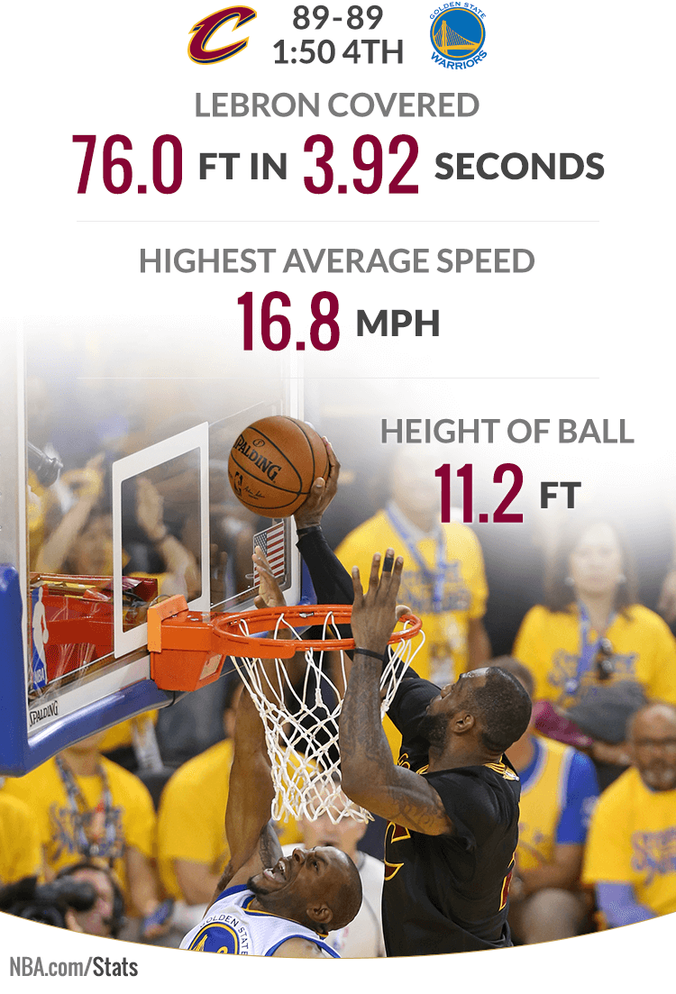 LeBron James: He is not as good a shooter as Stephen Curry. His team wasn’t as good as Curry’s in either of the past two years. But, man, was he at his bowling-ball best in this series. I still cringe when he goes up for a jumper, and he still goes up for jumpers too often. But his play overall in this series — and that block of Andre Iguodala at the end of Game 7 [click on image at right, or see the video below], something already being dubbed LeBlock — was MVPish.