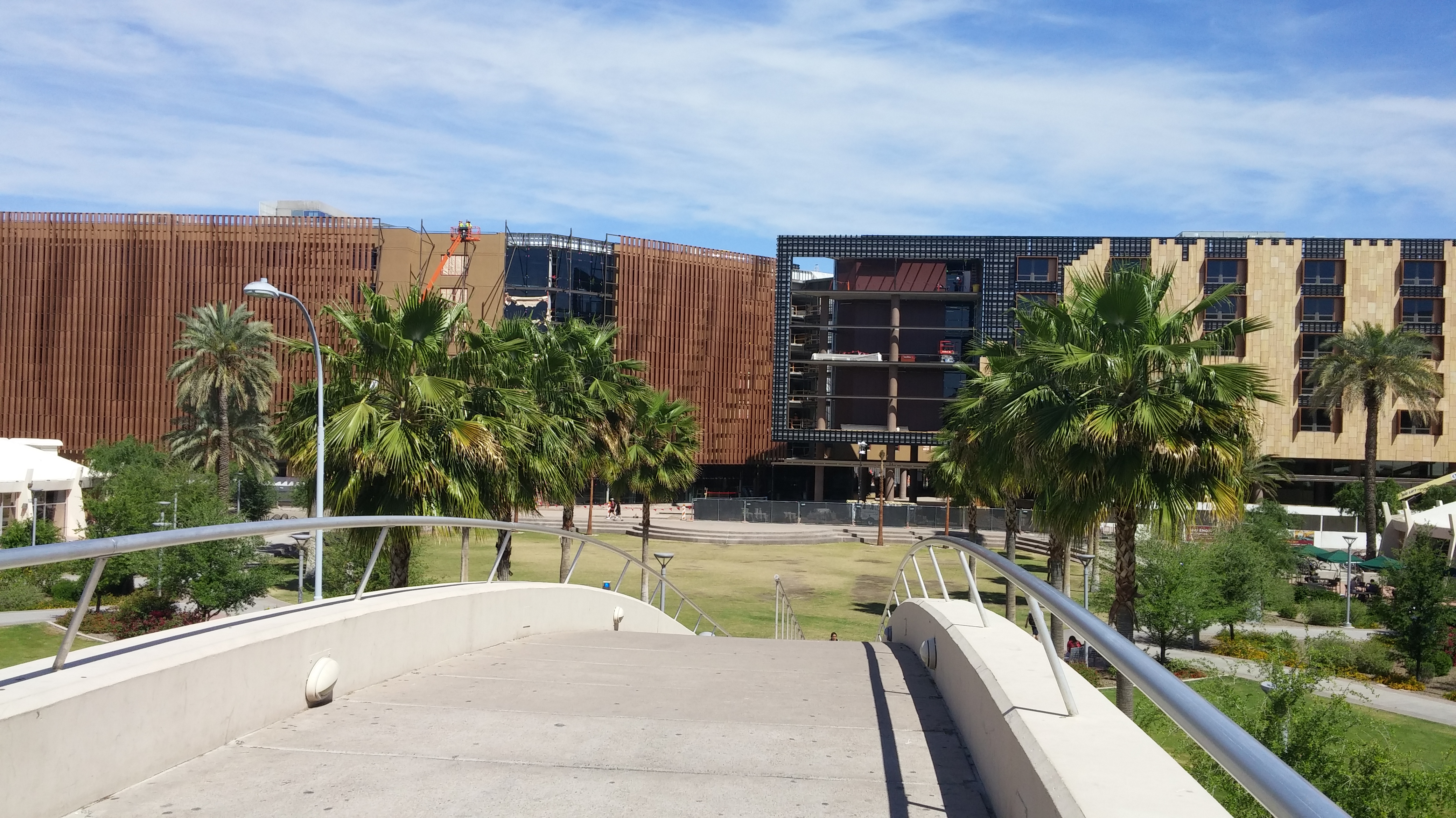 The thing is, things change. This photo of Palm Walk was taken looking south, from the foot of the bridge that spans University Avenue. Pointing this way, ASU looks like it did back in the ’80s.