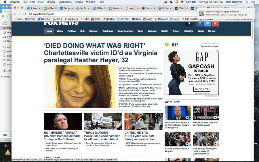 (A note here, too: In the middle of all the violence in Charlottesville, we should all admit, are a group of people that nobody wants to acknowledge. The ultra-violent who get off on adrenaline-buzzes. The punks itching for a street fight. The guys who are just there to raise hell. Yes, on both sides.)