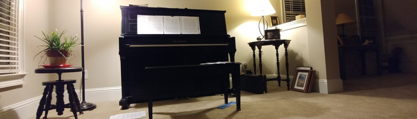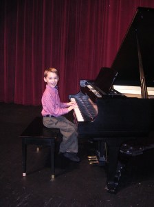 Not much later, we gently pushed him into formal lessons with a professional teacher. And he took them, pretty much every week, from then through most of high school. He took them from a couple different stern-looking women in their homes, from some forgettable teachers at those strip-mall music stores with the little practice rooms in the back, and occasionally from people in our home; first at Sophie’s upright, then on the one we bought a few years later after Sophie’s fell hopelessly and forever out of tune.