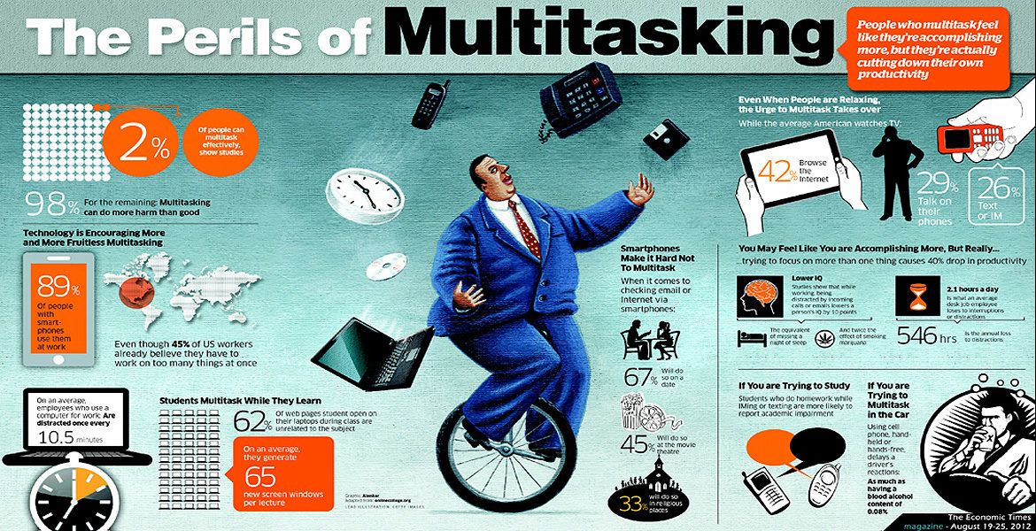 The awesome part of the whole concept of multitasking is that it’s clear now that it isn’t a skill after all. Science says so. Multitasking is a myth. Probably started by your boss.
