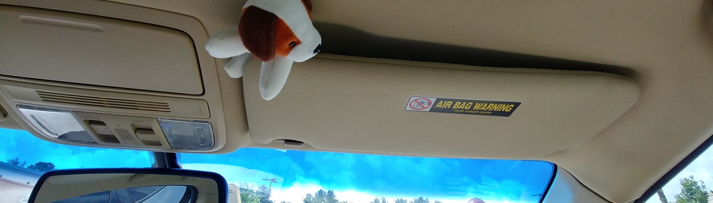 And the puppy sits wedged behind the visor of the family car, as it has been ever since we walked out of Wendy’s that day, a reminder of a lesson learned. Whatever it was.