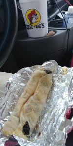 Wrapped in a warm store-made tortilla, stuffed with egg and cheese and freshly chopped and smoky brisket, it is the epitome of truck-stop cuisine. Paired with a 75-ounce soda (road trips, if nothing else, are a perfect excuse to eat terribly), it is simply the ultimate grab-and-inhale-on-the-go day-starter. God, it was good. It also was like $2.29.