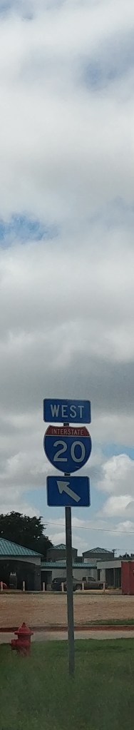 Because I-20 has no real traveling songs named after it that I know of — and if it does, I don’t think I want to hear them — I had Luke queue up “Route 66.” He put on the Chuck Berry version. And then The Rolling Stones. And, finally, he found one to my liking, the Natalie Cole rendition. I-20 is not the “highway that’s the best,” but we were, after all, motoring west.