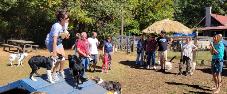 A few days ago, Mary Jo hosted a big party for a few dozen of her adopted puppies and their parents. It was on the verge of summer weather here — 82, sunny, hot enough to melt some pre-Halloween candy that someone brought — but, again, at this time of the year, when you know those kind of days are on their way out, no one was complaining. The day went off flawlessly. Everyone, puppies included, had a grand time.